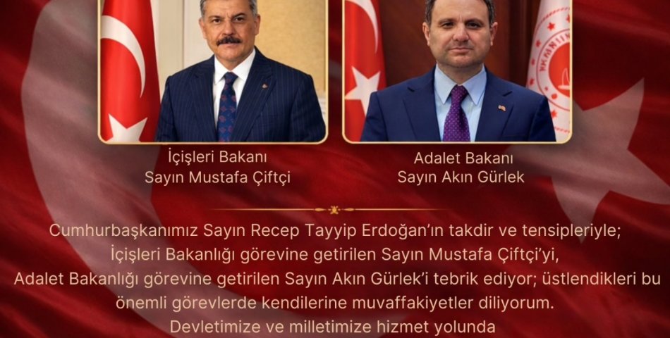 İçişleri ve Adalet Bakanlarımıza Yeni Görevlerinde Muvaffakiyetler Dilerim