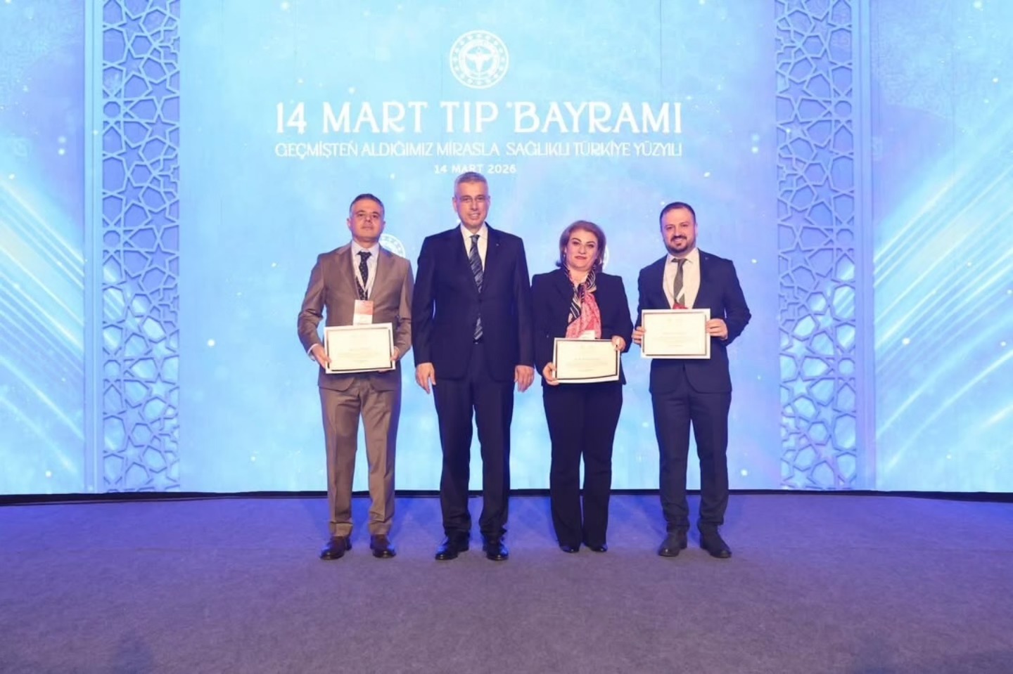 Programa Mardin’imizi temsilen katılan İl Sağlık Müdürümüz Uzm. Dr. Saffet Yavuz, ilimizde Yılın Sağlık Çalışanı seçilen Ebe Aynur Karakaş ve Yılın Hekimi seçilen Uzm. Dr. Edip Gültekin’e teşekkür belgeleri, Sağlık Bakanımız Prof. Dr. Kemal Memişoğlu tarafından takdim edildi.