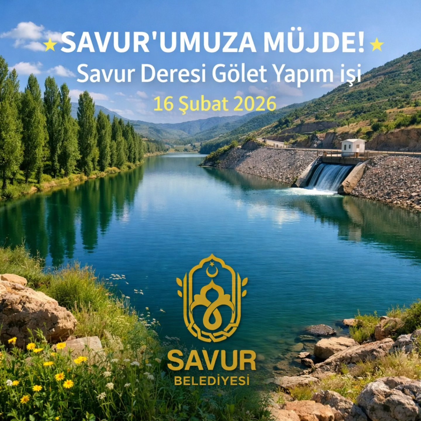 Söz verdiğimiz gibi; Savur Deresi Gölet Yapım Proje İşi, 16 Şubat 2026 tarihinde 2025/2254736 İKN ihale numarası ile ihaleye çıkıyor.
